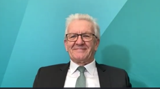 Auf die Frage der veränderten Arbeitsbedingungen durch Video-Konferenzen und andere Formen der digitalisierten Kommunikation (E-Akte), bestätigte Kretschmann, dass neue Online-Formate den Austausch auf allen Ebenen verändert hätten. In mancherlei Hinsicht mag das Vorteile gebracht haben; viele Autofahrten und Flugreisen erübrigen sich. Andererseits möchte er auf Dauer nicht auf Präsenzsitzungen, etwa im Kabinett, verzichten. „Die virtuellen Räume sind oft nicht das optimale Format für den politischen Austausch.“