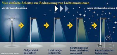 Um Lichtverschmutzung in der Gemeinde zu reduzieren bieten sich folgende Schritte an: